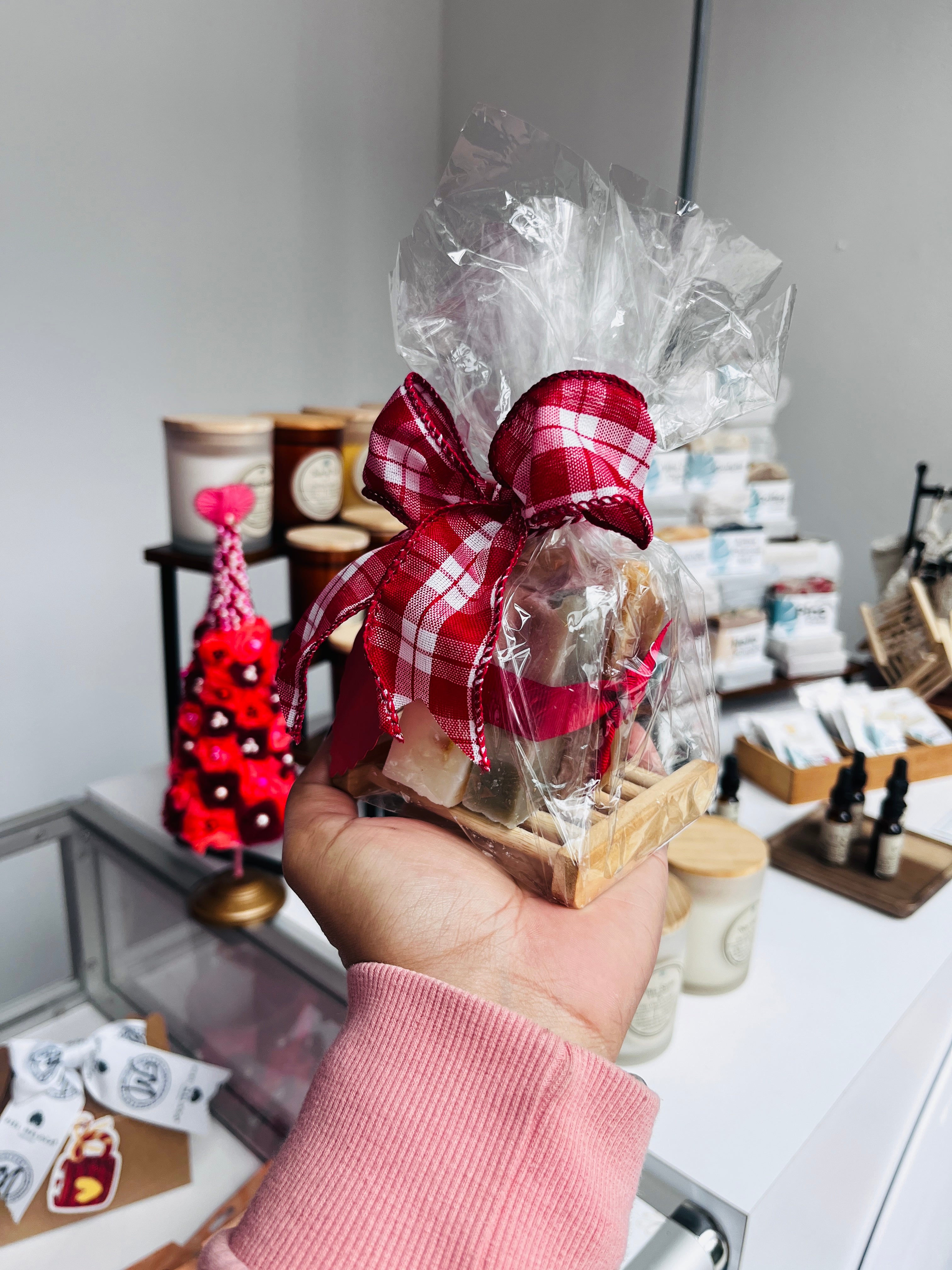 # Valentine's Drop Product Description Celebrate love with our exclusive Valentine's collection—a curated selection of handcrafted soaps, luxurious whipped scrubs, and aromatic candles designed to elevate intimate moments. Each piece features our signature spa-inspired aesthetic with warm, sensual scents and premium packaging perfect for gifting or self-indulgence. Treat yourself or that special someone to the ultimate pampering experience this season of romance.